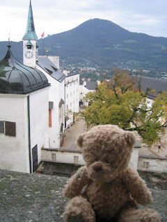 Sitting in a window, in the castle overlooking Salzburg, which is quite far from Millstatt but close to Germany, I was told. They are a bit mad here, I find. They used to paint their only ox and walk it on the castle walls. And they did that every day, with that ox but painted it another color every day until the angry people outside went away. At least that is what I understood. I didn´t get all of it I have to admit.